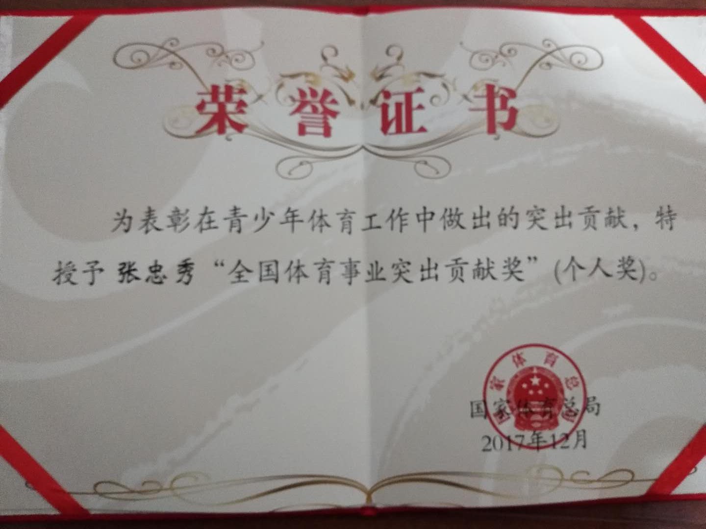 张忠秀同志荣获“2017年全